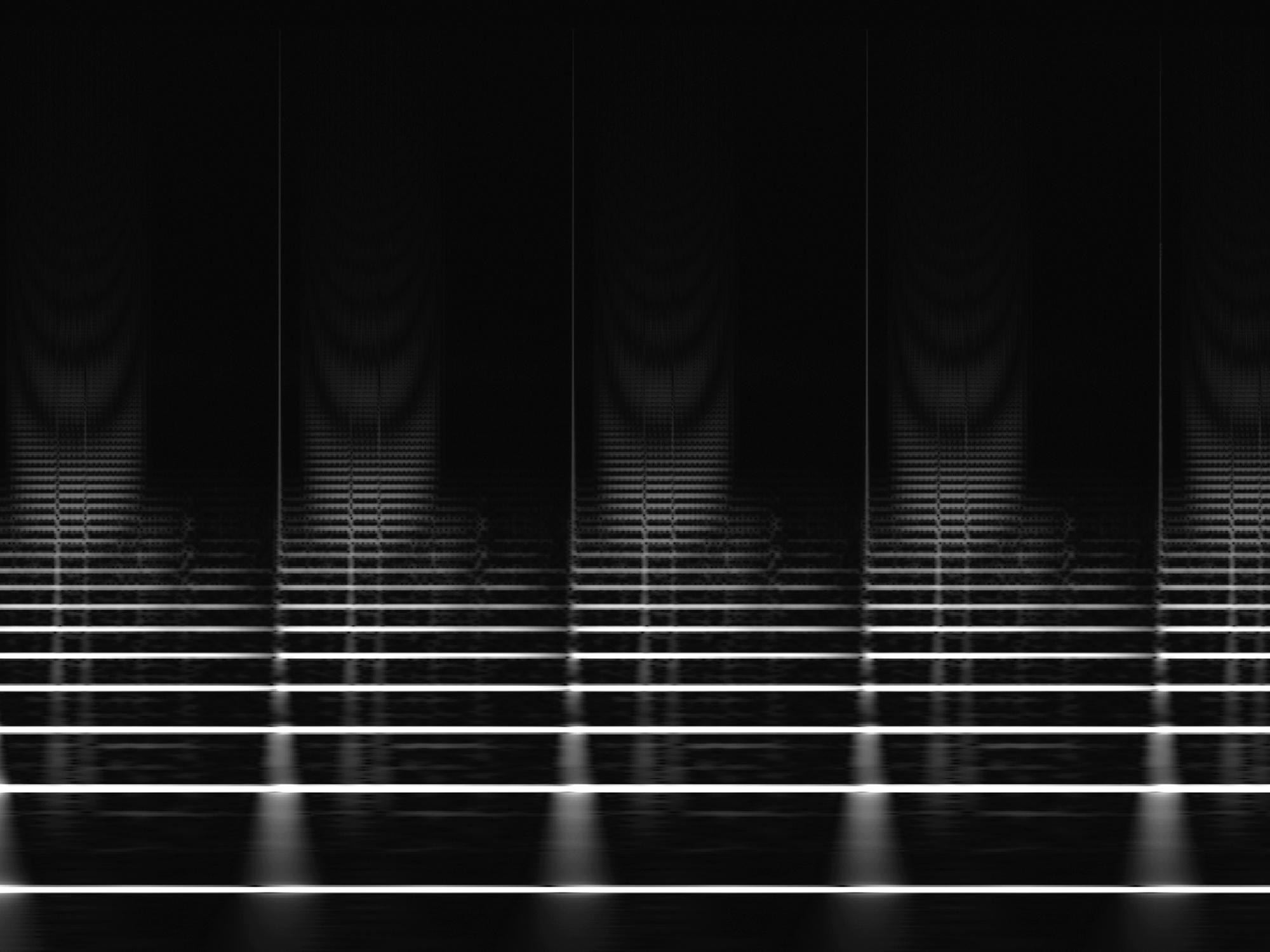 NASA mp3 audio files of the Kepler star (light curve waves converted to sound) which I converted to visual spectrograms using software. The y axis represents frequency/pitch, the x axis is time, the light areas are sound. Printed onto acetate, then onto photographic paper by being exposed to light in a darkroom.
